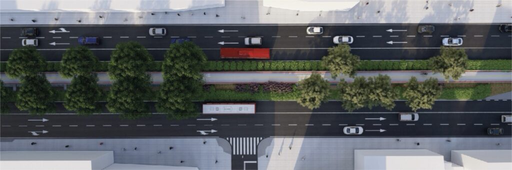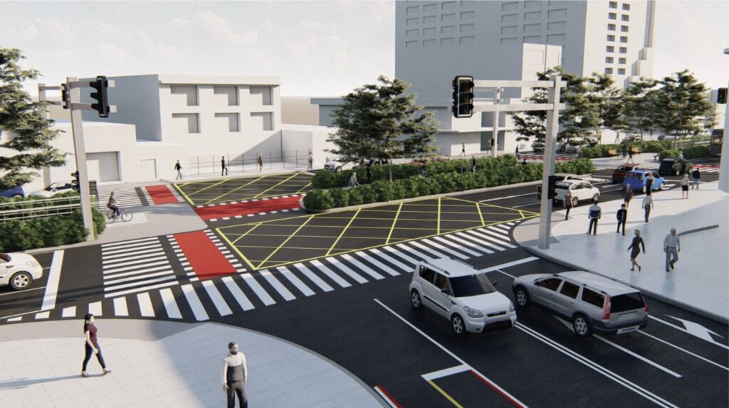 O projeto inclui a criação de um corredor intermodal, obras de drenagem, requalificação das calçadas para garantir mais acessibilidade, iluminação, revitalização das estações de ônibus e implementação de nova sinalização horizontal e vertical, além da remodelação de cruzamentos, o que vai otimizar o fluxo de pedestres e veículos.