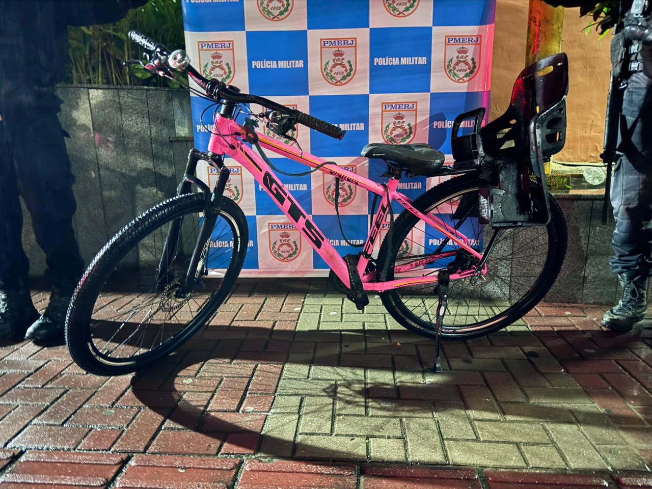 Questionado, o suspeito apresentou versões contraditórias e, posteriormente, confessou o furto. Ele conduziu a guarnição até a Praça do Barroco, onde havia cortado o cadeado da bicicleta. O objeto foi localizado na Rua das Dálias. Em seguida, os policiais também encontraram o assento infantil que havia sido retirado da bicicleta durante a fuga.