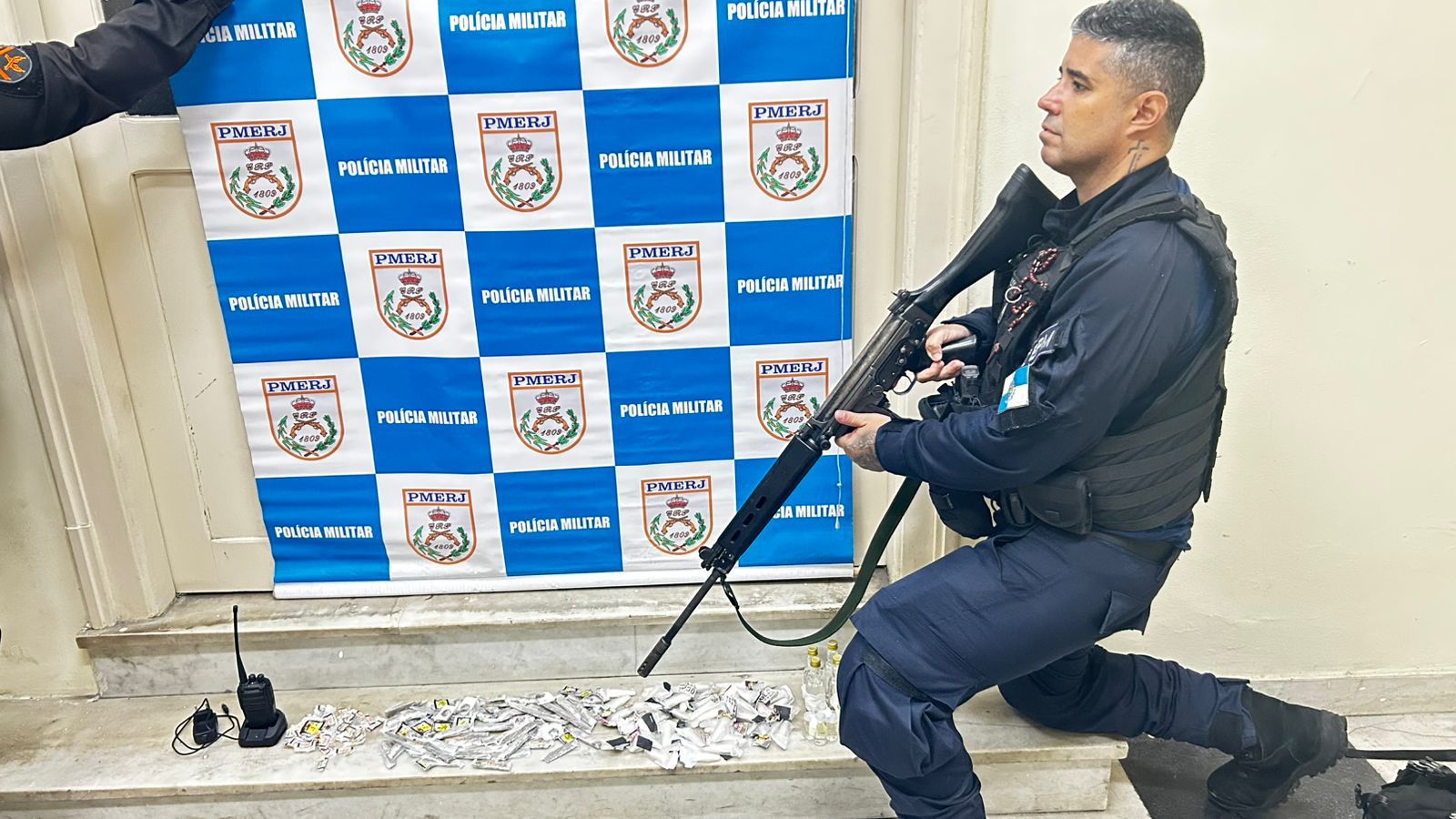 Durante patrulhamento, os policiais observaram cerca de cinco indivíduos que fugiram ao perceber a presença da guarnição. Após cerco tático, dois suspeitos foram localizados dentro de uma casa abandonada, onde foi encontrada uma mochila com entorpecentes e um radiotransmissor.