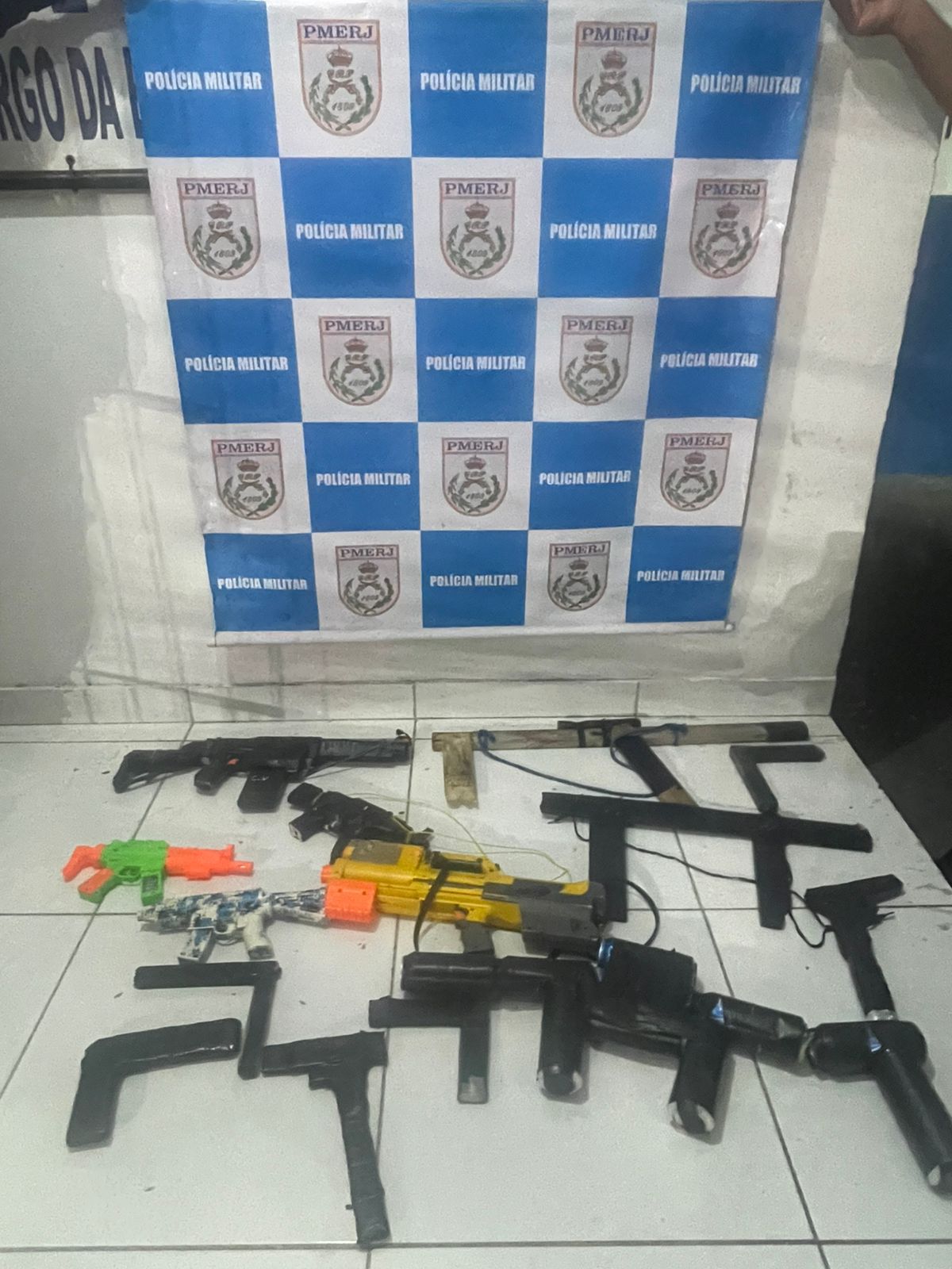 De acordo com a corporação, durante patrulhamento, os policiais avistaram indivíduos portando armas de brinquedo. Ao perceberem a aproximação das equipes, os suspeitos fugiram, abandonando os objetos no local.